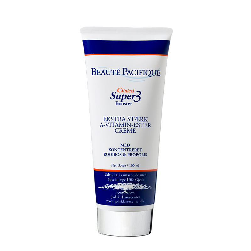 Clinical Super3 Booster har ett högt innehåll av tre mycket stabila A-vitaminestrar som effektivt återskapar kollagenstrukturen i dermis för att släta ut. Cremen stärker även huden så att den blir mer robust och motståndskraftig mot negativ miljöpåverkan. Är även lämplig för behandling av oren hud med akneproblematik, då den reducerar överdriven talgproduktion med hjälp av tre sebum-reglerande ingredienser. Den innehåller dessutom Propolis som har antibakteriell effekt, och som motverkar följdskador av oren hud, såsom infektioner och ärrbildning. Det höga innehållet av Rooibosextrakt i Clinical Super3 Booster ger huden extra fukt samt mängder av antioxidanter som bekämpar fria radikaler.